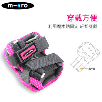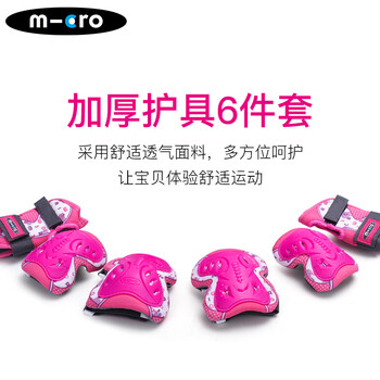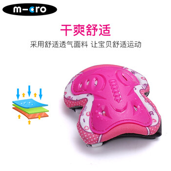 micro迈古儿童护具轮滑滑板平衡自行车头盔micro防摔护手肘膝 X8M粉L码