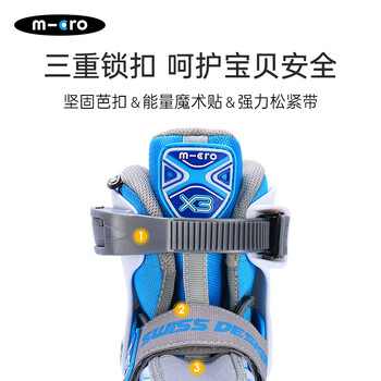 micro迈古轮滑鞋儿童溜冰男女micro直排旱冰中小学适用 X3蓝色套餐L码