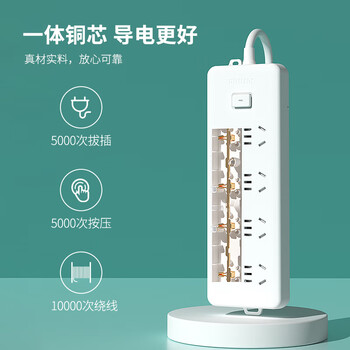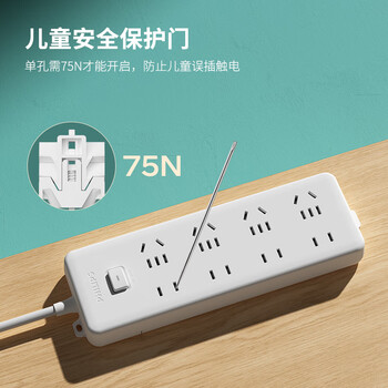 飞利浦(PHILIPS)8位组合孔2.8米 儿童保护门 插线板/插排/排插/接线板/拖线板