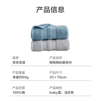 居家布艺---毛巾/浴巾/浴袍---毛巾京东京造京东京造 精梳棉抗菌毛巾 2条装(baby蓝色+浅灰色)