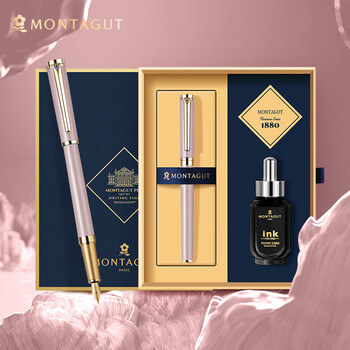 梦特娇(MONTAGUT)【女生礼物】钢笔礼盒墨水套装商务办公礼品礼物潘朵拉系列冰灰粉0.5mm