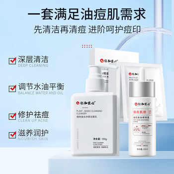 仁和匠心祛痘套装(洗面奶+祛痘美白精华液+祛痘面膜)男女控油去角质淡痘印