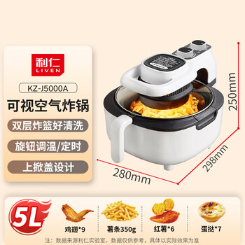 利仁(Liven)空气炸锅家用大容量5升可视电炸锅 烤箱空气炸锅机无油煎炸锅薯条机KZ-J5000A