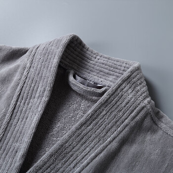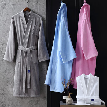 竹一百浴袍 纯棉加厚毛圈浴衣毛巾料男女通用睡袍睡衣 白色 L码