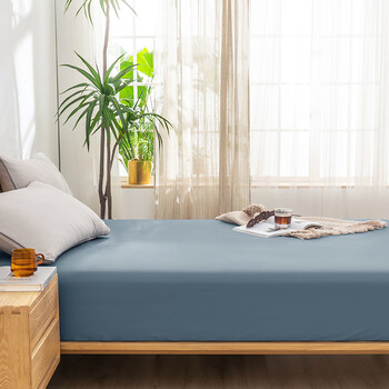 京东京造 60支长绒棉磨毛床笠 A类加厚纯棉床罩床垫保护套 1.8米床 灰蓝