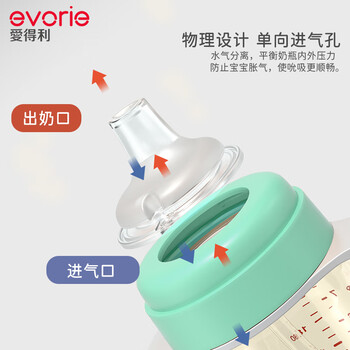爱得利(evorie) 婴儿鸭嘴奶瓶6个月以上 宽口径带手柄带重力球PPSU奶瓶 240ml绿