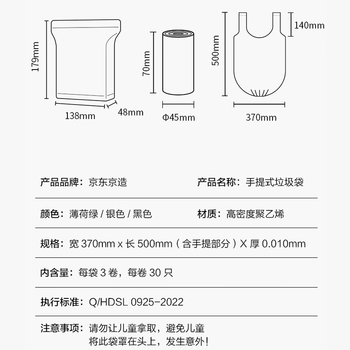 京东京造 背心式垃圾袋37*50cm*90只 10μ1丝 手提厨房家用加厚袋小号