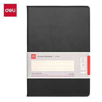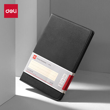 得力(deli)皮面本轻商务笔记本办公会议记事本记录本 16K80张/本245*171mm 7900经典款黑色