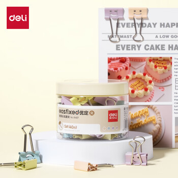 得力(deli)40只19mm微笑系列金属长尾票夹票据夹燕尾夹 小号文件夹子 办公用品 40只/筒 8487