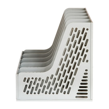 得力(deli)五联镂空桌面文件框栏书立架档案收纳盒 办公室带标签资料文件置物架书本资料收纳神器 灰色9838