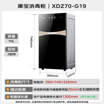 康宝(Canbo)消毒柜家用立式消毒碗柜小型婴儿奶瓶碗筷二星高温消毒烘干双门收纳柜XDZ70-G19