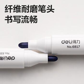 得力(deli)粗头可擦易擦白板笔耐磨耐用 办公文具会议老师培训教学 蓝色10支/盒 P06817