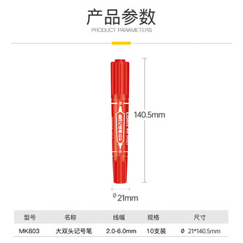 笔头粗细:2.0mm/6.0mm;颜色:红色
