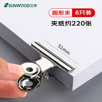 三木(SUNWOOD)51mm圆形票夹/金属长尾夹/票据夹 6只/袋 2063