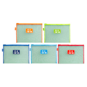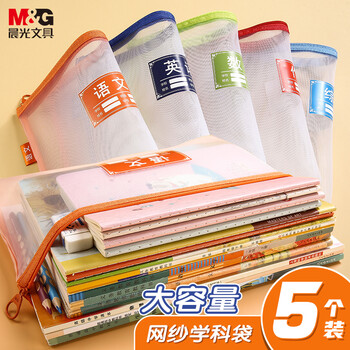 晨光(M&G)晨光(M&G)单层A4文件袋小学生透明网格学科分类袋 试卷科目分类拉链袋书本作业袋 5个装ADM929WF