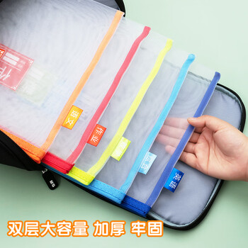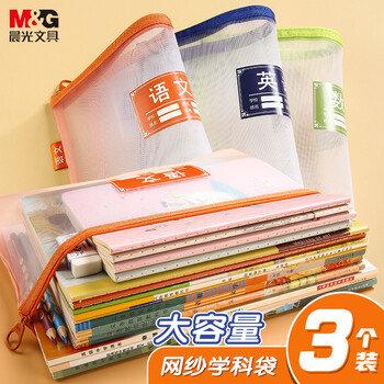 晨光(M&G)文具A4科目分类单层拉链袋 语数英试卷作业收纳袋 透明网格文具袋补习袋 3个装ADM929VX