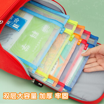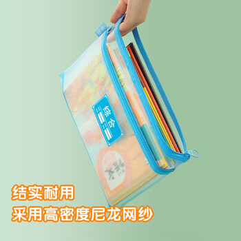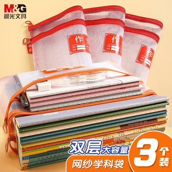晨光(M&G)文具A4科目分类双层拉链袋 学生试卷作业收纳袋 透明网格文具袋补习袋 3个装ADM929WA