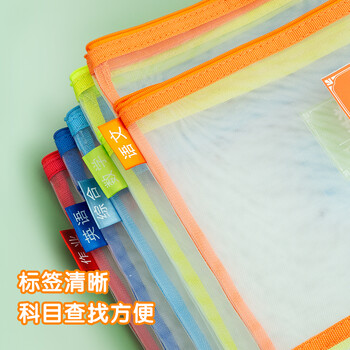 晨光(M&G)文具A4科目分类双层拉链袋 学生语数英作业试卷收纳袋 透明网格文具袋补习袋 4个装ADM929WC