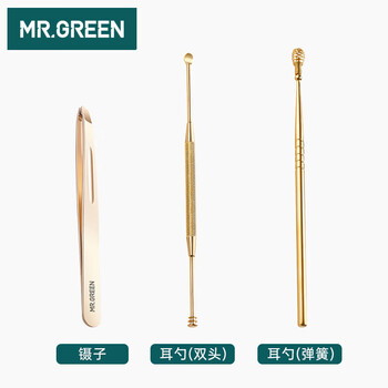 MR.GREEN德国挖耳勺掏耳朵神器镊子眉夹拔毛工具螺旋采耳套装3件套Mr-2182