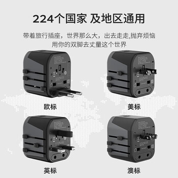 飞利浦(PHILIPS)出国转换插头转换器/国际旅行插座转换器/英欧美澳标德国日本新加坡香港适用/2A1C充电17W黑