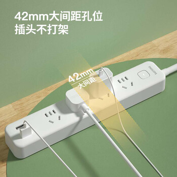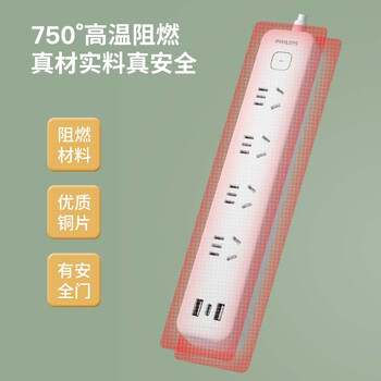 飞利浦(PHILIPS)安全智能USB插座 4位总控1.8米 插排/插线板/排插/拖线板/3USB接口多功能插板