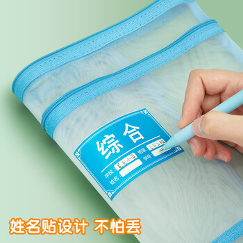 晨光(M&G)文具A4科目分类双层拉链袋 语数英试卷作业收纳袋 透明网格文具袋补习袋 3个装ADM929VW