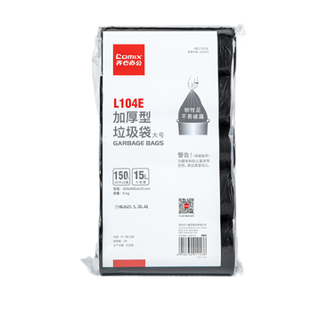 齐心(COMIX)5卷150只加厚大号办公生活垃圾袋50*60cm 垃圾分类 办公用品 工具 黑色L104E