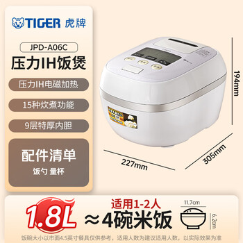 虎牌(TIGER)电饭煲 Pro 日本迷你小型压力IH 土锅涂层压力电饭煲1-2人1.8L JPD-A06C