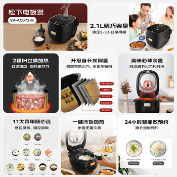 松下(Panasonic)电饭煲2-3人IH加热迷你电饭锅家用小型多功能不粘锅智能预约2.1升SR-AC072-K