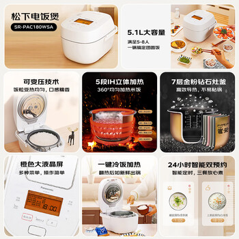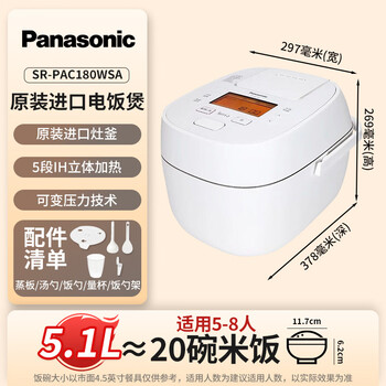 松下(Panasonic)原装进口电饭煲5-8人家用IH加热可变压力电饭锅智能煮饭不粘锅5.1升PAC180WSA