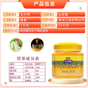 北大荒 东北黑蜂 山花蜜 1000g 纯蜂蜜 百花蜜 送礼物礼品冲饮