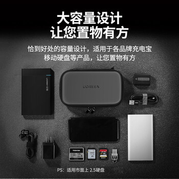 绿联2.5英寸移动硬盘包多功能数码配件收纳盒 数据线移动电源充电宝器U盘手机耳机保护套50274