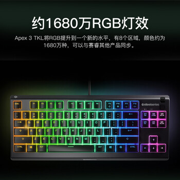 赛睿(SteelSeries) (SteelSeries) Apex 3 TKL游戏键盘 紧凑型有线键盘 8区域RGB背光 IP32 薄膜轴 84键