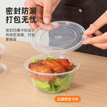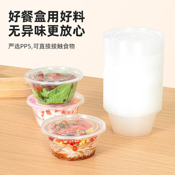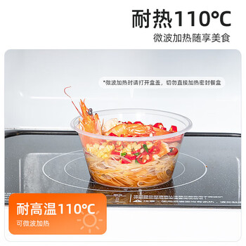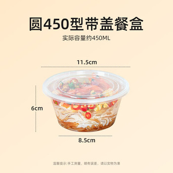 特美居(temeiju)一次性饭盒圆形透明塑料快餐盒加厚带盖打包盒餐具450套装450型