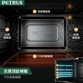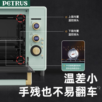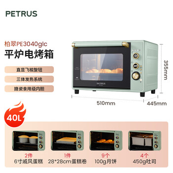 柏翠(petrus)电烤箱家用40L容量搪瓷内胆独立控温热风循环PE3040GLC