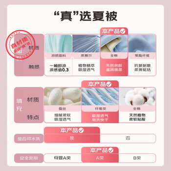 恒源祥100%全棉夏凉被子1.5x2米A类抗菌春秋被单人夏被空调被芯四季通用
