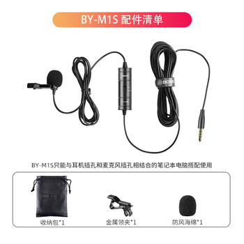 BOYA 博雅麦克风 M1S手机直播领夹麦克风 摄像机单反相机采访短视频配音收音麦克风胸麦小蜜蜂话筒 6米