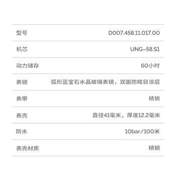质保卡*1、价格吊牌*1、Union标准表盒*1、日历调校针*1