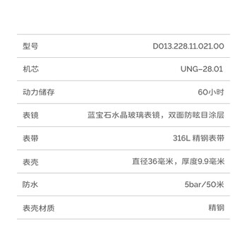 手表*1、质保卡*1、价格吊牌*1、标准表盒*1、感谢卡*1