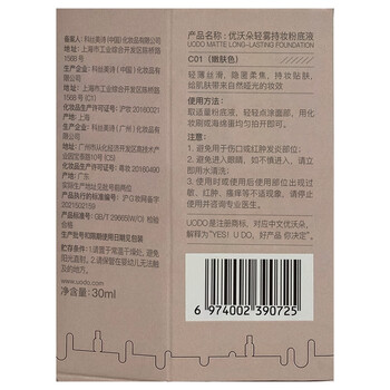 优沃朵轻雾持妆粉底液C01(嫩肤色)