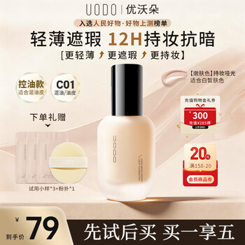 优沃朵(UODO)柔雾粉底液30ml遮瑕控油持妆雾面混油皮C01嫩肤色女友礼物