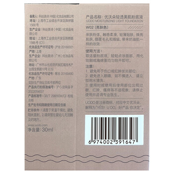 优沃朵轻透美肌粉底液W02 (亮肤色)