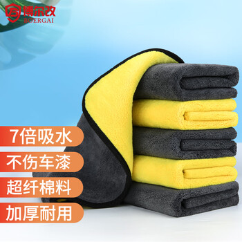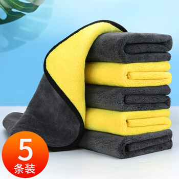 博尔改 洗车毛巾擦车布汽车用品双面不掉毛加厚吸水超细纤维珊瑚绒清洁抹玻璃 五条装