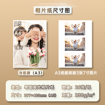 得力(deli)A3 230g高光面照片纸 相片打印纸 20张/包 11823