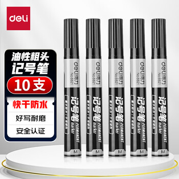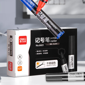 得力(deli)(deli)油性粗头记号笔物流黑色大头笔 签名笔马克笔10支/盒 P06821 办公用品