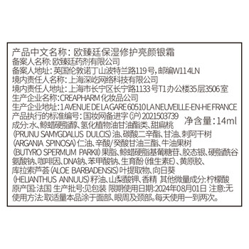 欧臻廷保湿修护抗皱银霜面霜14ml滋润护肤品化妆品礼盒生日礼物送女友