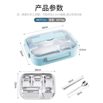 美厨(maxcook)304不锈钢饭盒4.5cm加大加深5格学生饭盒保温盒2L配餐具个MCFT111