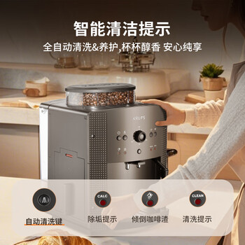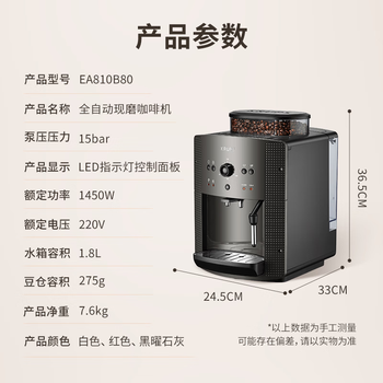 krups德国克鲁伯咖啡机家用/办公室全自动咖啡机意式浓缩咖啡研磨一体机欧洲原装进口EA810B80 黑灰色