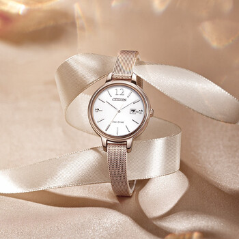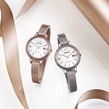 西铁城(CITIZEN)手表女日韩表光动能玫瑰金色白盘钢带送女友礼物EW2447-89A