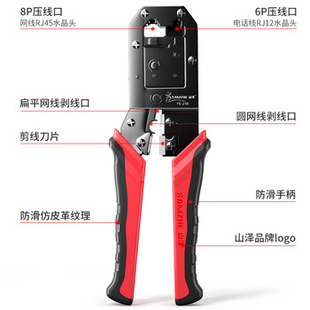 山泽(SAMZHE)网线钳 网络电话水晶头压线钳 省力棘轮弹簧设计双用压剥剪钳 电脑网线电话线压接工具 YS-218 *1